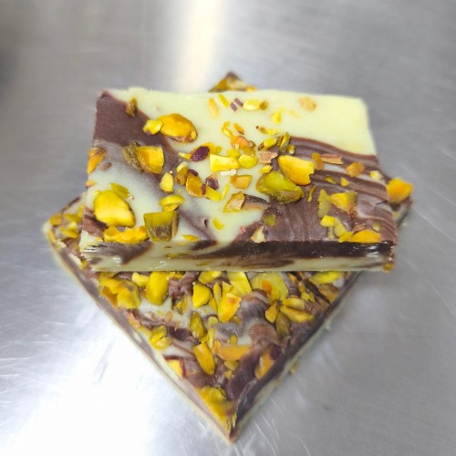 Indulge in our delicious Pistachio flavour! Pistachio-flavoured fudge, naturally green with Pistachio paste, topped with flaked Pistachios. Try it now!